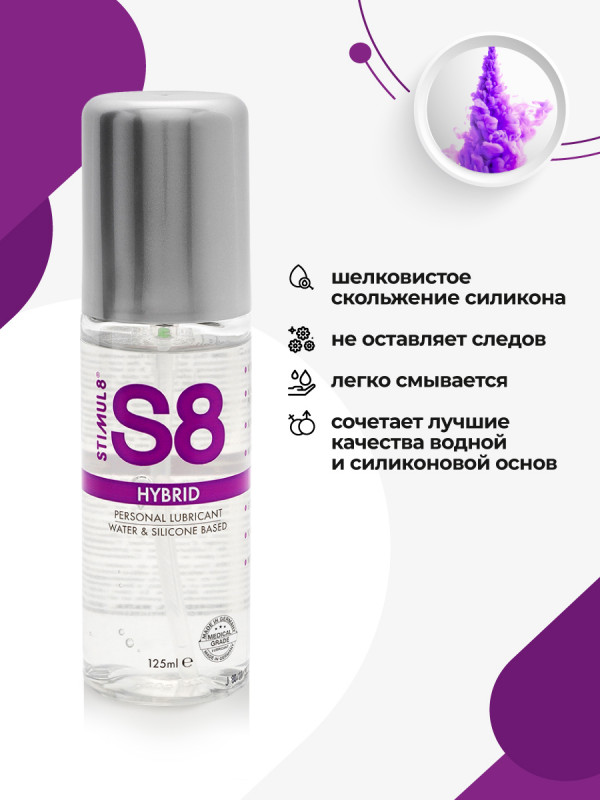 Гель "Stimul 8 Hybrid" сочетает в себе длительное скольжение силикона и нежность водной основы! Не скатывается, не создает чувство липкости и вязкости. Отлично смывается водой
