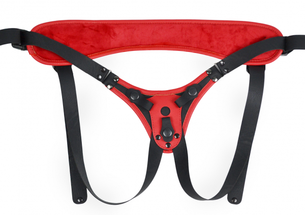 Выполнены трусики из высококачественной экокожи в черно-красном цвете. Барахатный внутренний слой влагопоглащающий. Модель "джоки" с открытыми ягодицами позволяют получать удовольствие Страпонессе во время процесса! Регулируемые ремни и пряжки позволяют добиться идеальной фиксации трусиков на теле